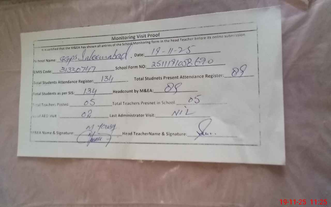 | EMIS Code: 31330747 | Name of School: GGPS SALEEM ABAD (Dera Mian Yousaf Ali 84/p) | |||