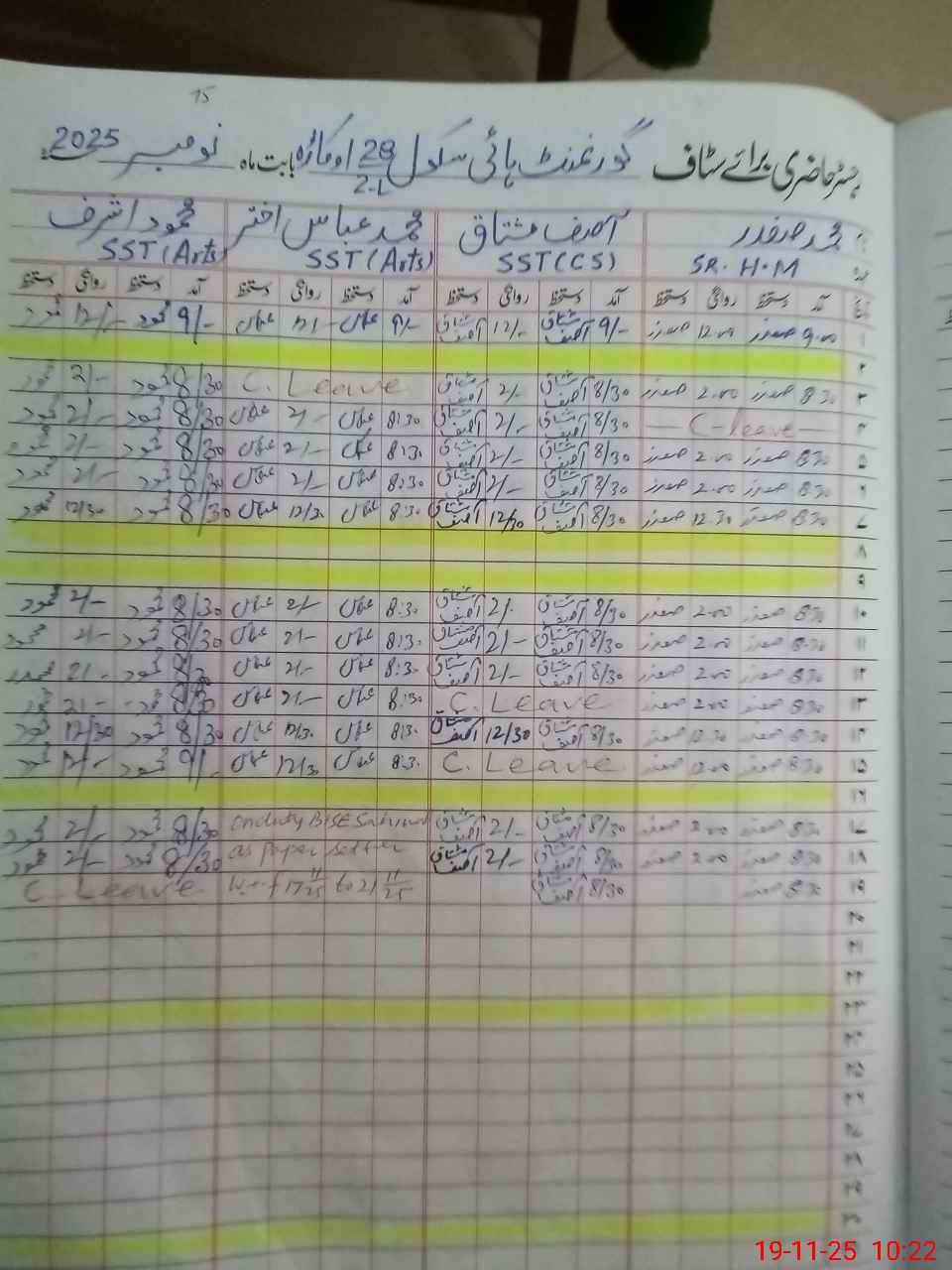 | CNIC | Full Name | Designation | R/C | Absence During Last Calender Month |
