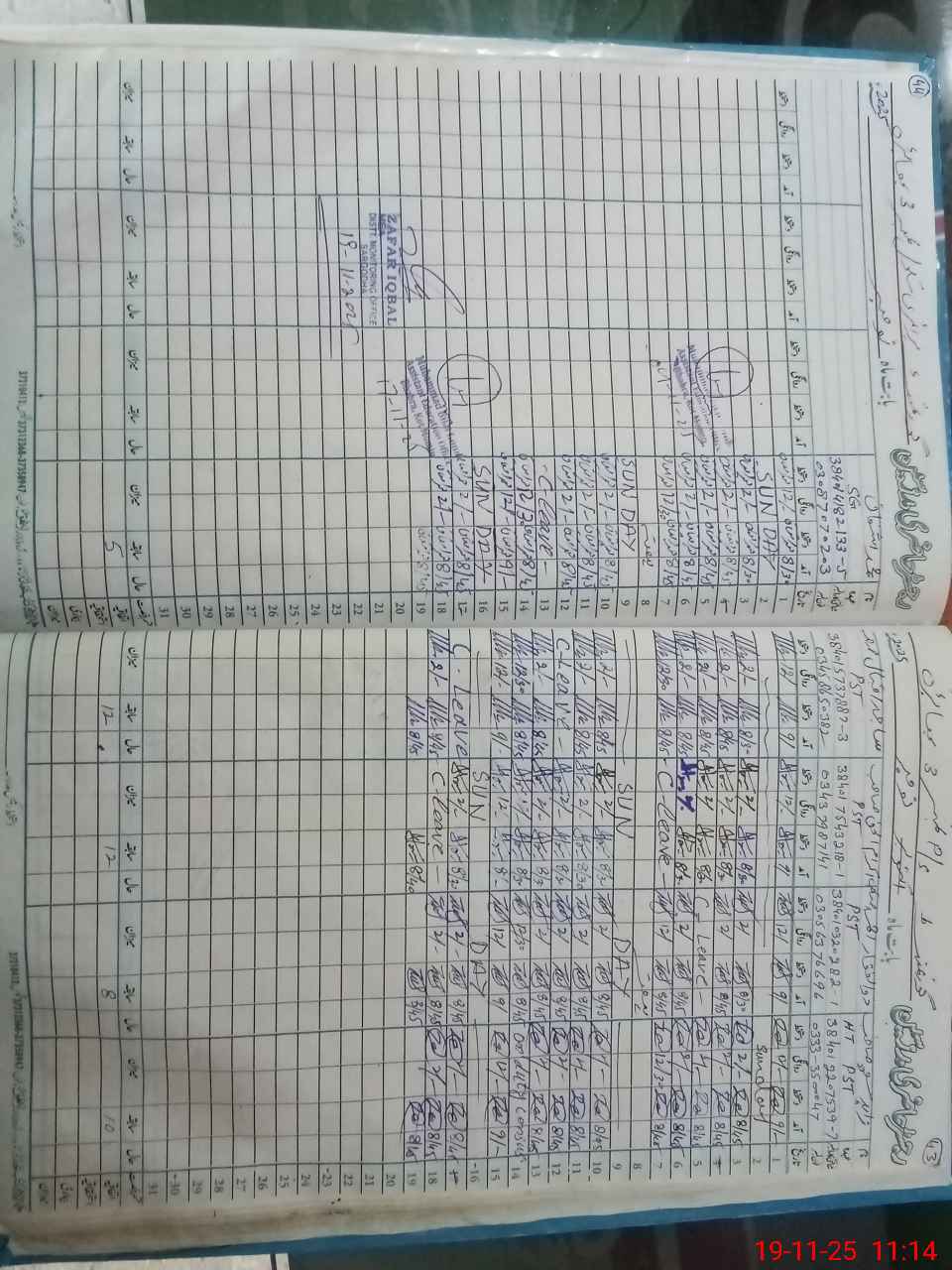| CNIC | Full Name | Designation | R/C | Absence during last cal. month |