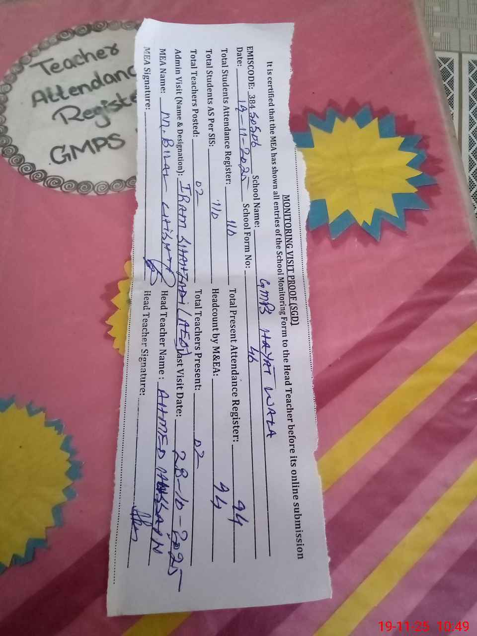 | EMIS Code: 38450506 | Name of School: GMPS HAYAT WALA | |||