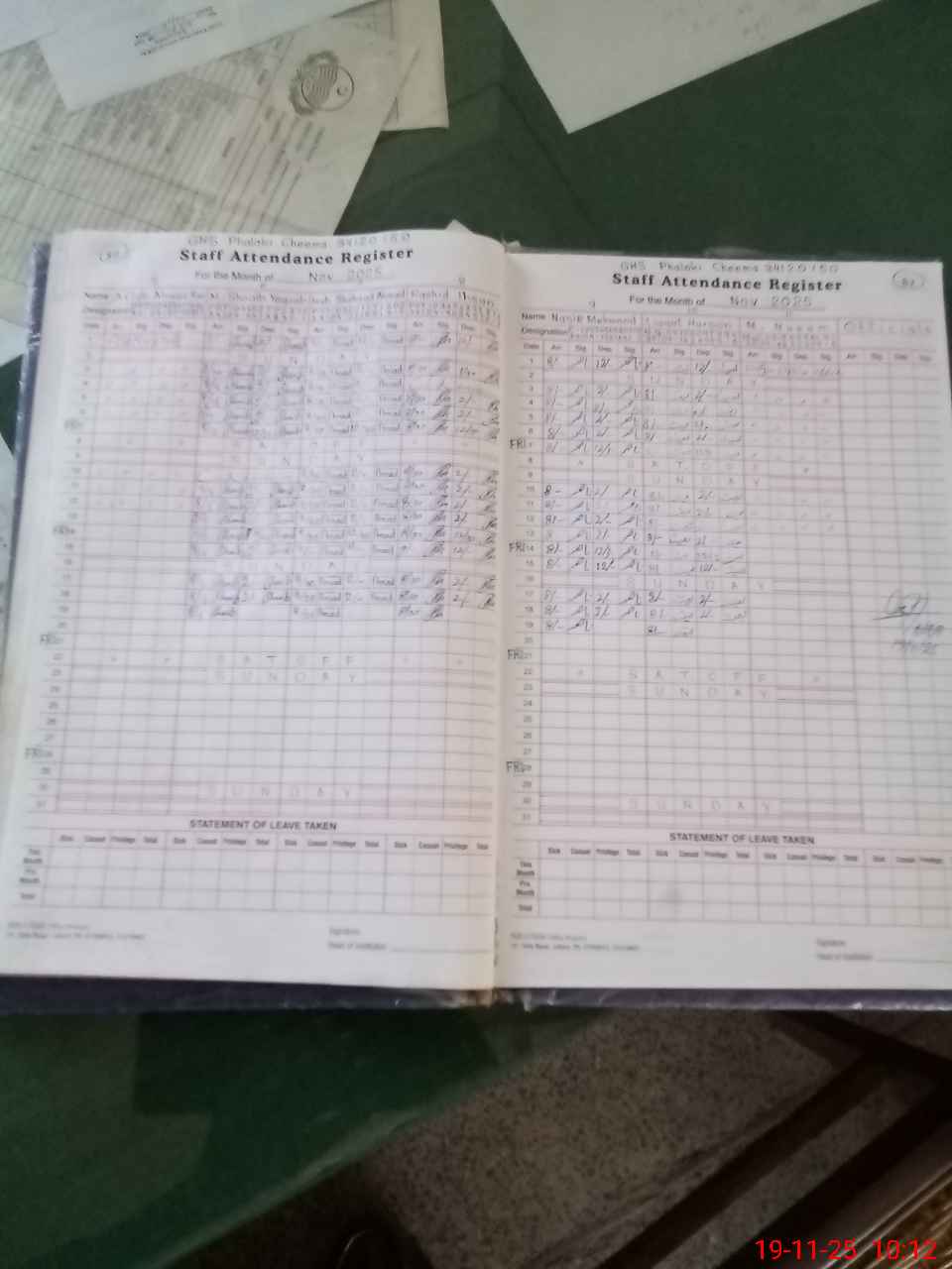 | CNIC | Full Name | Designation | R/C | Absence During Last Calender Month |