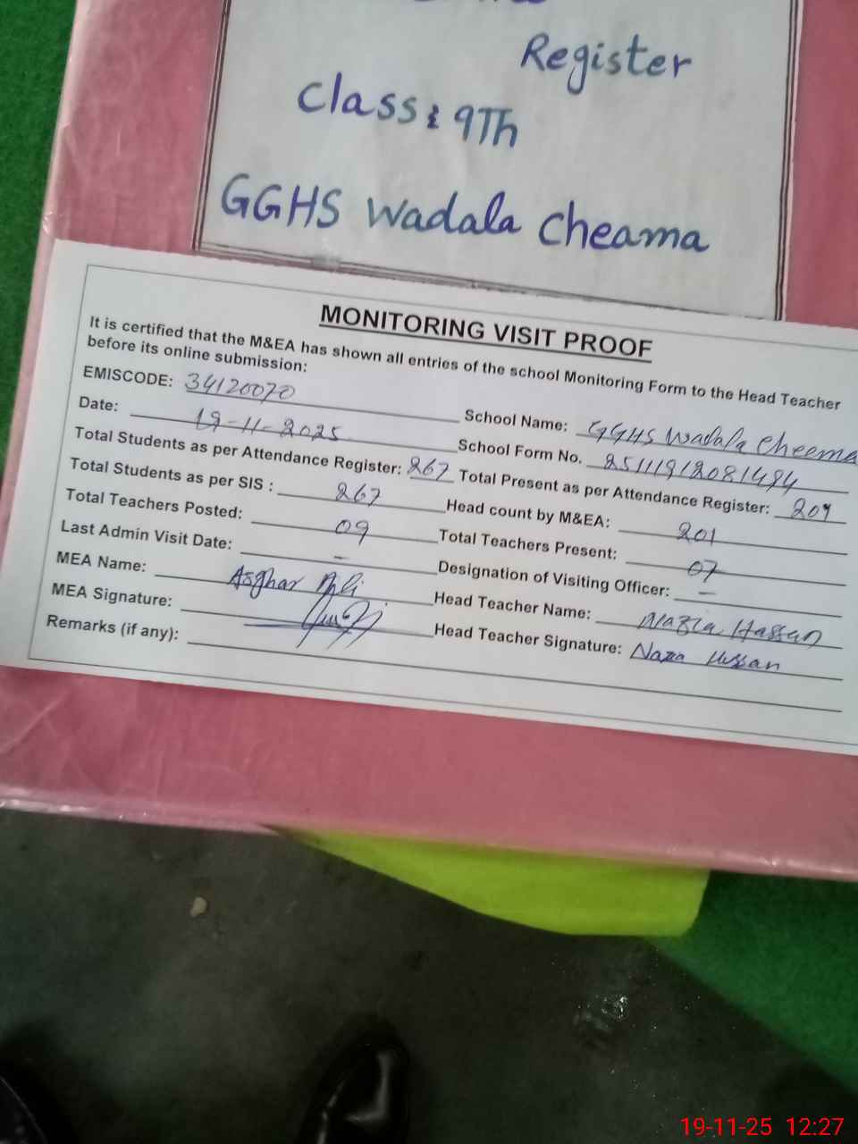 | EMIS Code: 34120070 | Name of School: GGHS WADALA CHEEMA | |||
