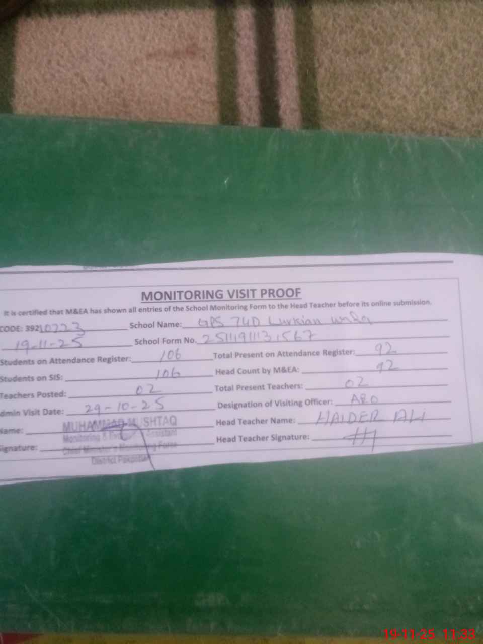 | EMIS Code: 39210223 | Name of School: GPS 74 D LURKIAN WALA | |||