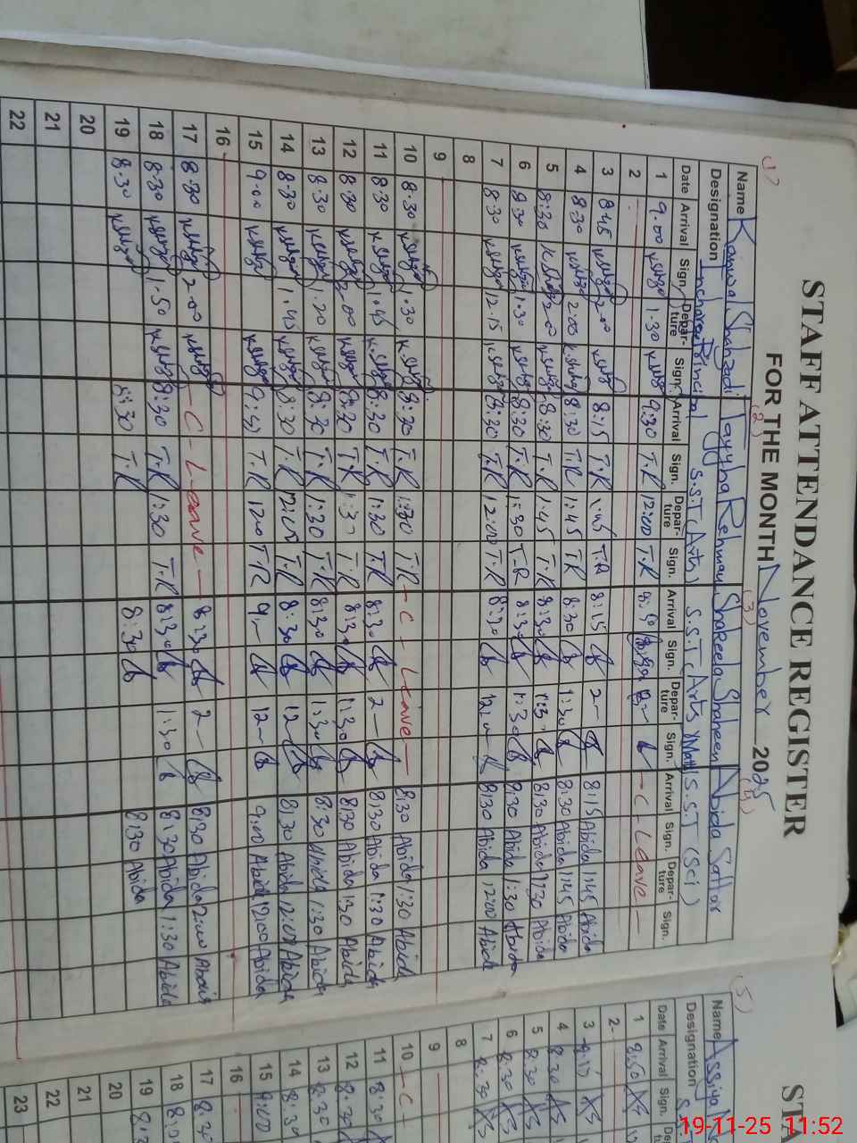 | CNIC | Full Name | Designation | R/C | Absence During Last Calender Month |