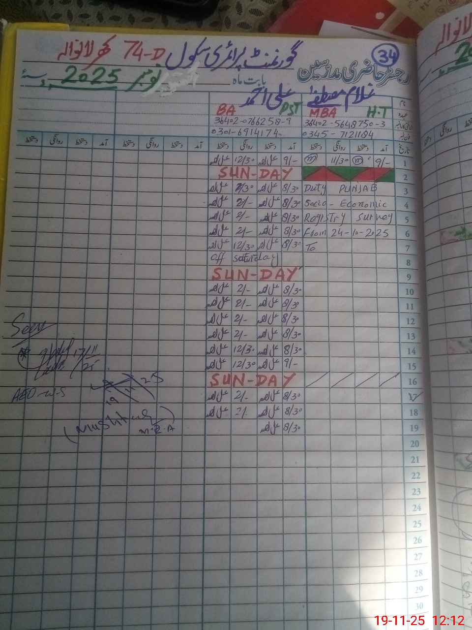 | Name: Al**** Ah**** Designation: (School Headmaster's/Headmistress's) PST Phone/Cell Number: 03**** |