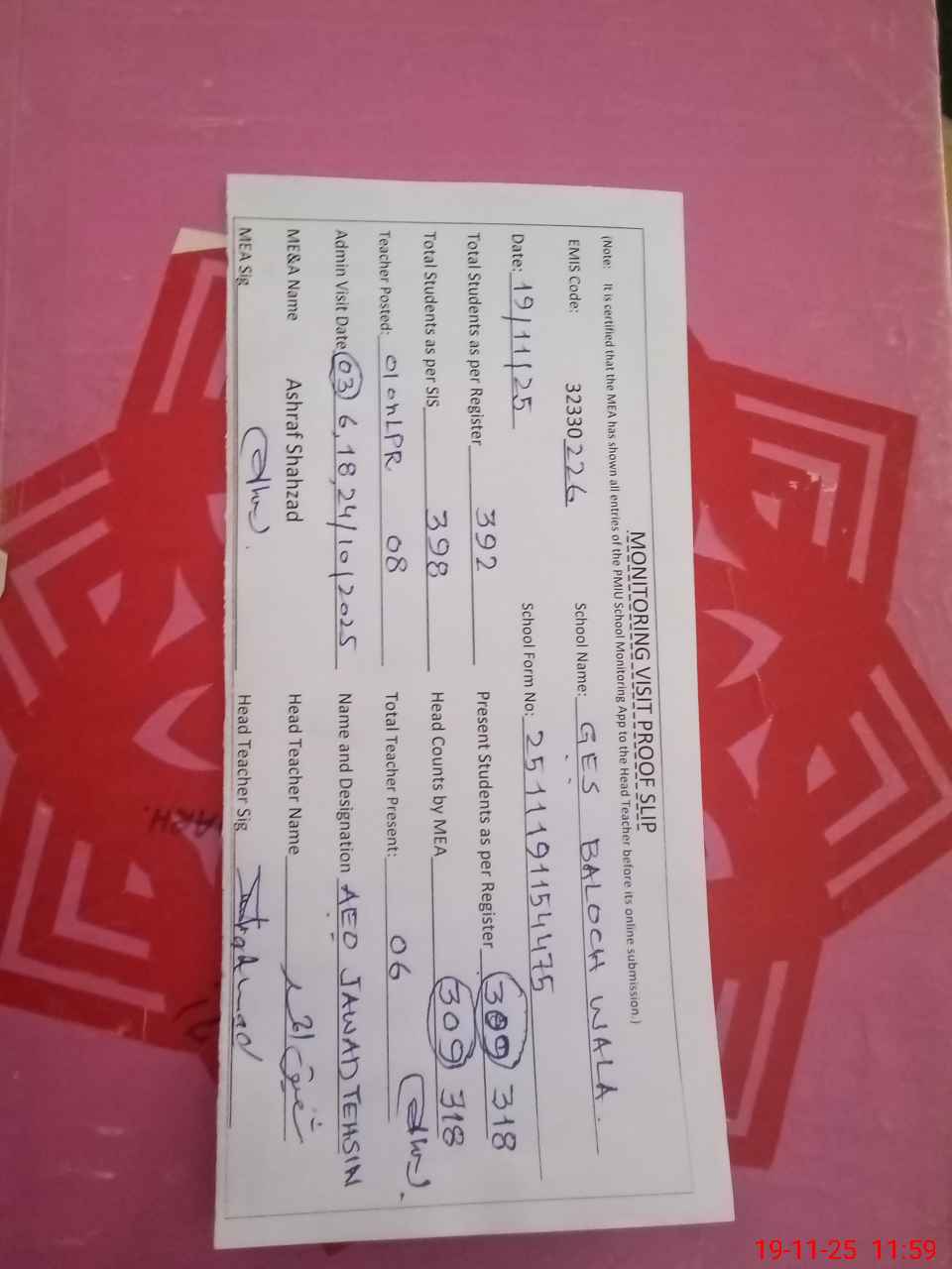 | EMIS Code: 32330226 | Name of School: GES BALOCH WALA | |||