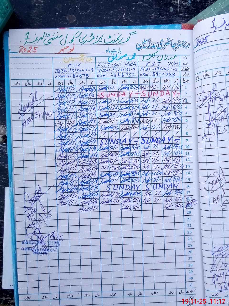 | CNIC | Full Name | Designation | R/C | Absence During Last Calender Month |