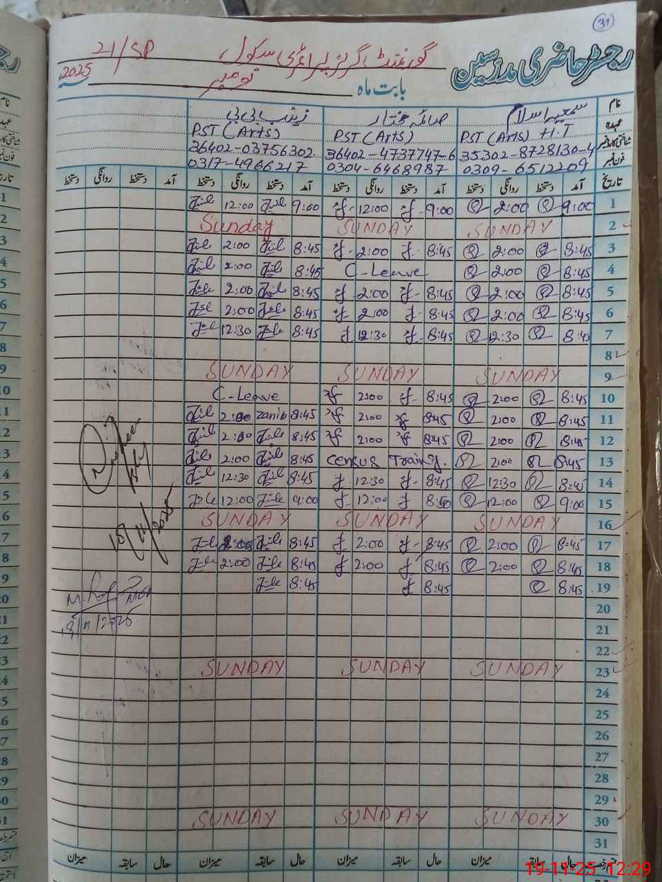 | Name: Sa**** Is**** Designation: (School Headmaster's/Headmistress's) PST Phone/Cell Number: 03**** |