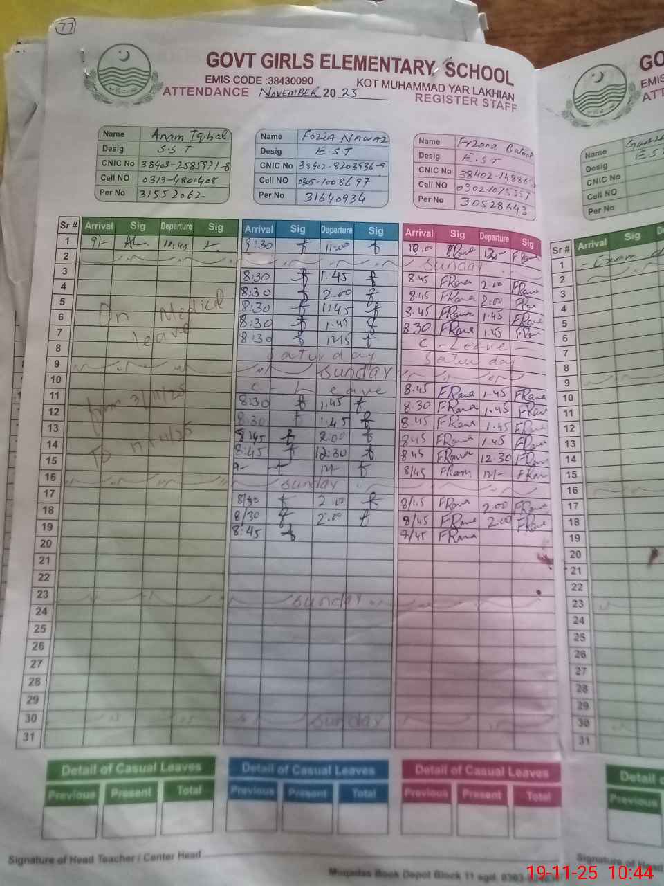 | 38**** | Pa**** Ak**** | CHOWKIDAR | Contract | 0 | 0 | 0 | 0 | 0 | 0 | 0 | 0 | 0 | Casual |