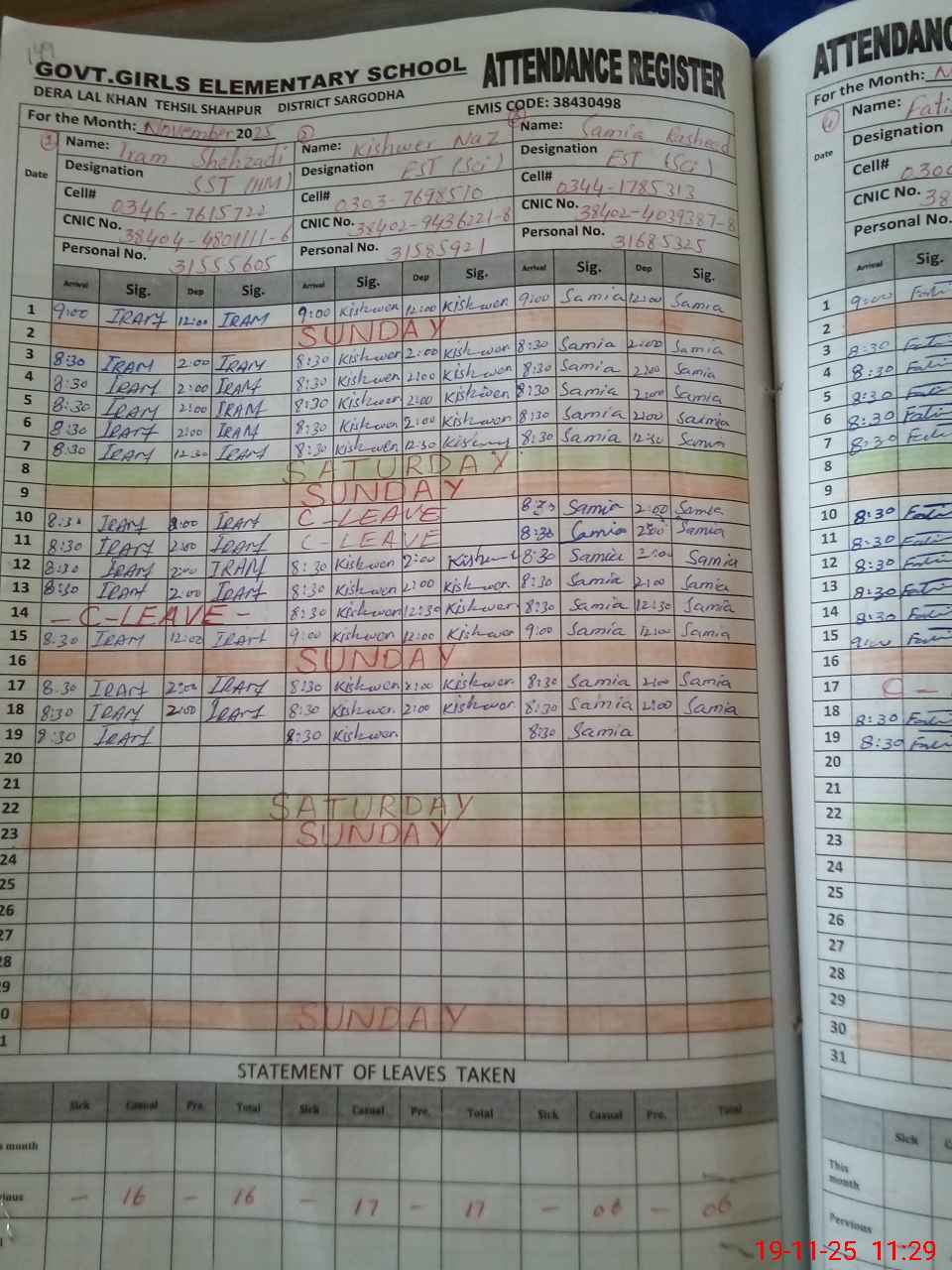 | 38**** | Qa**** Ab**** | CHOWKIDAR | Regular | 0 | 0 | 0 | 0 | 0 | 0 | 0 | 0 | 0 | Casual |