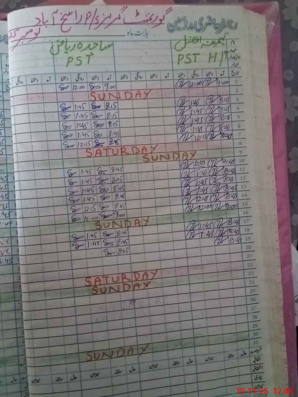 | CNIC | Full Name | Designation | R/C | Absence During Last Calender Month |