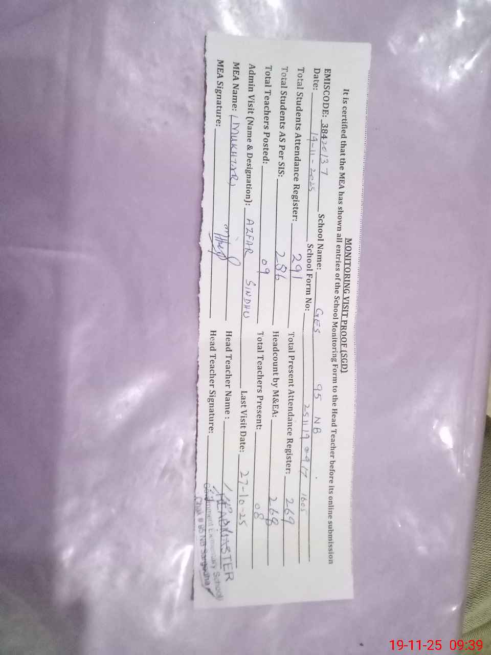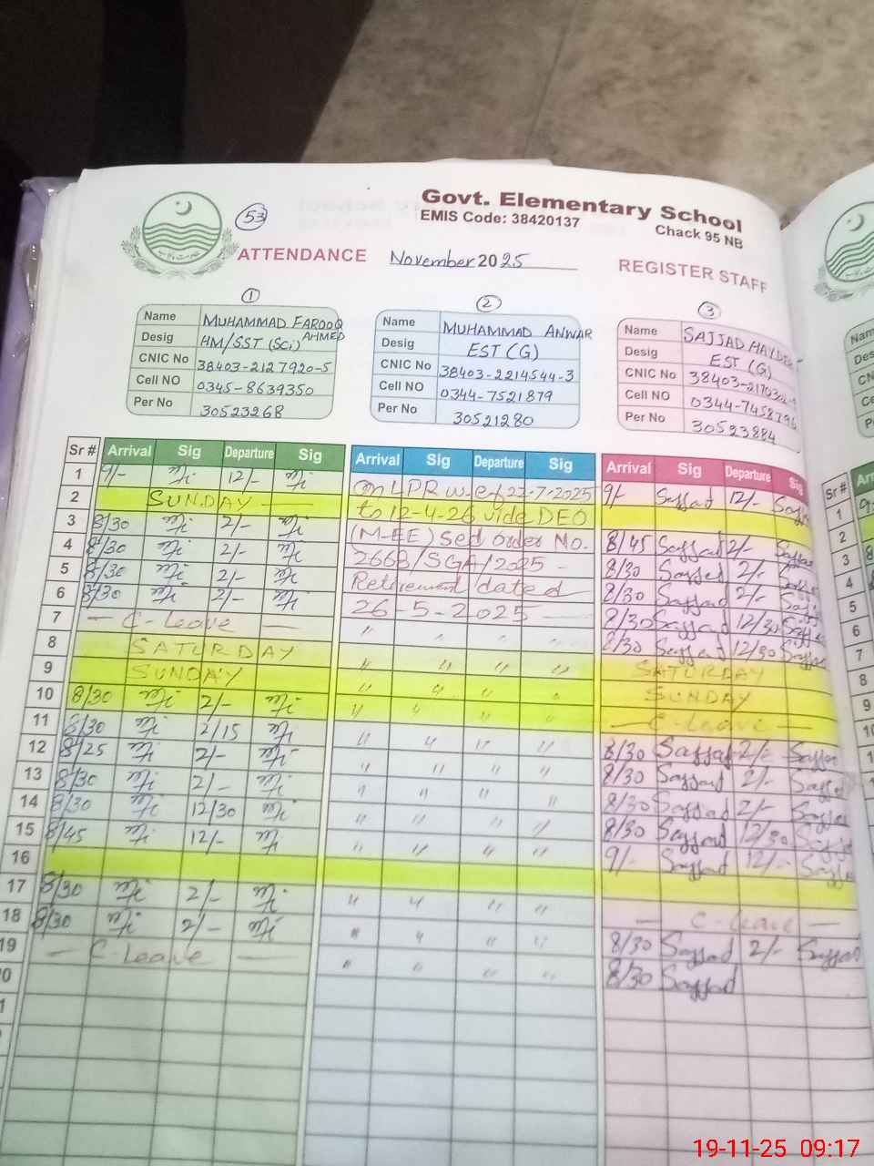 | EMIS Code: 38420137 | Name of School: GES CHAK NO.95 NB | |||