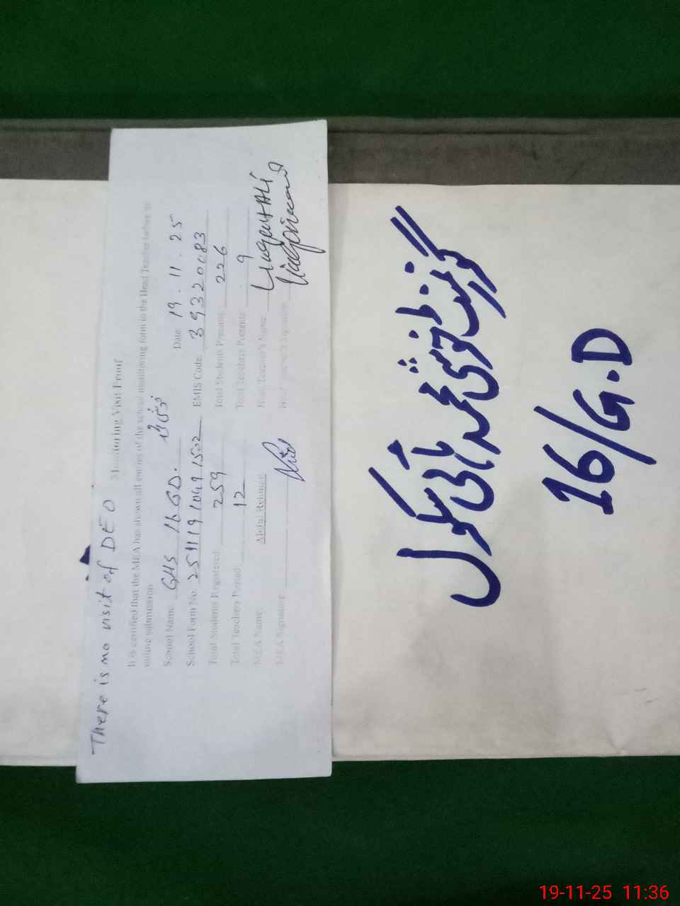 | EMIS Code: 39320083 | Name of School: GHS KHUSHI MUHAMMAD 16/GD | |||