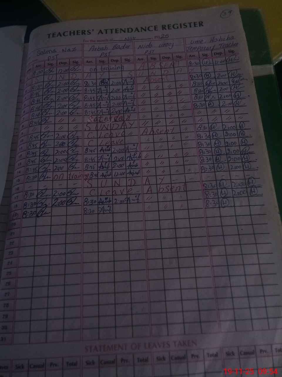 | 37**** | Ni**** Ur**** | ESE Arts | Regular | 0 | 0 | 0 | 0 | 0 | 0 | 0 | 0 | 0 | Absent (Un-Authorized) |