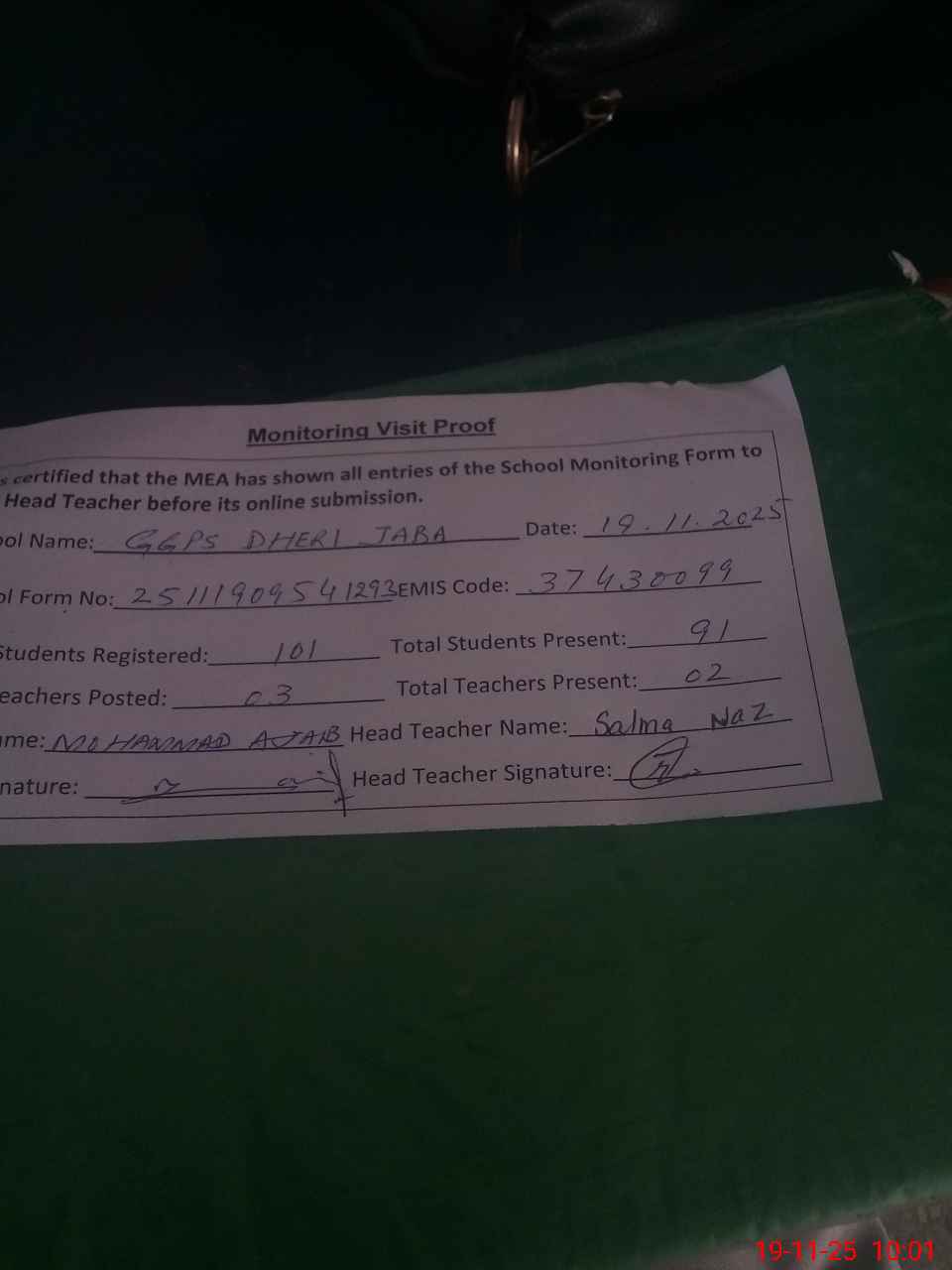 | EMIS Code: 37430099 | Name of School: GGPS DHERI JABA | |||