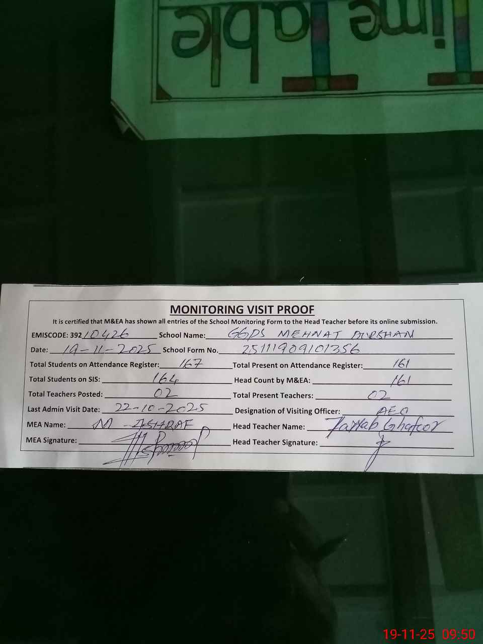 | EMIS Code: 39210426 | Name of School: GGPS CHAK MEHNAT DURSHAN | |||