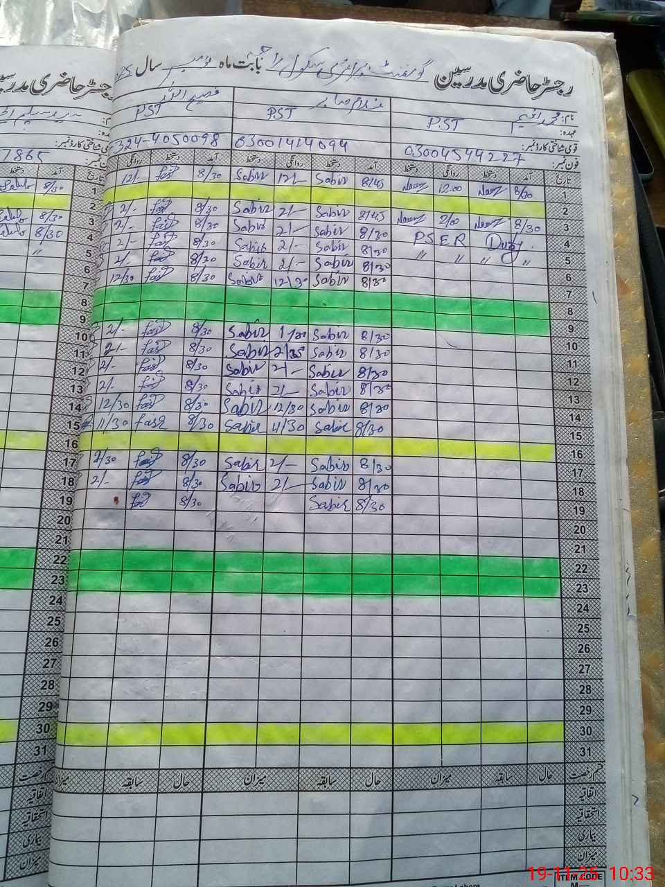 | CNIC | Full Name | Designation | R/C | Absence During Last Calender Month |