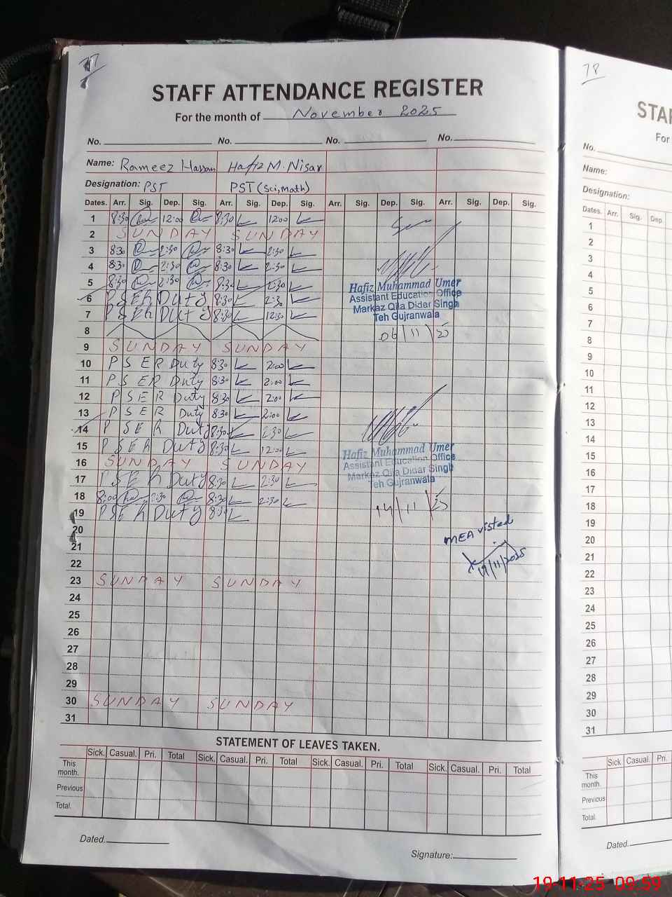 | Name: Ra**** Hu**** Designation: (School Headmaster's/Headmistress's) PST Phone/Cell Number: 03**** |