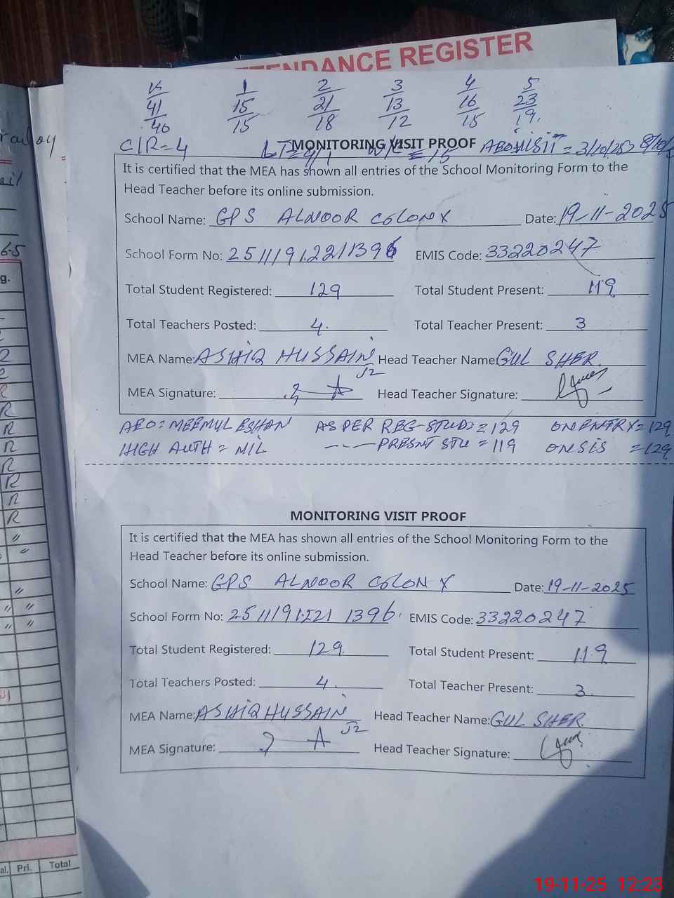 | EMIS Code: 33220247 | Name of School: GPS ALNOOR COLONY | |||