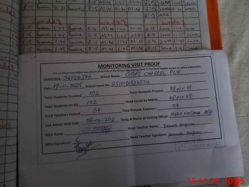 | EMIS Code: 36130346 | Name of School: GGPS CHABEEL PUR SYED WALI KHOI NAWAB PUR ROAD | |||