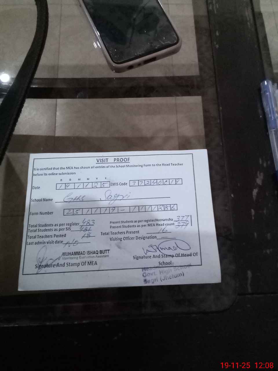 | EMIS Code: 37240019 | Name of School: GHS SAGRI | |||