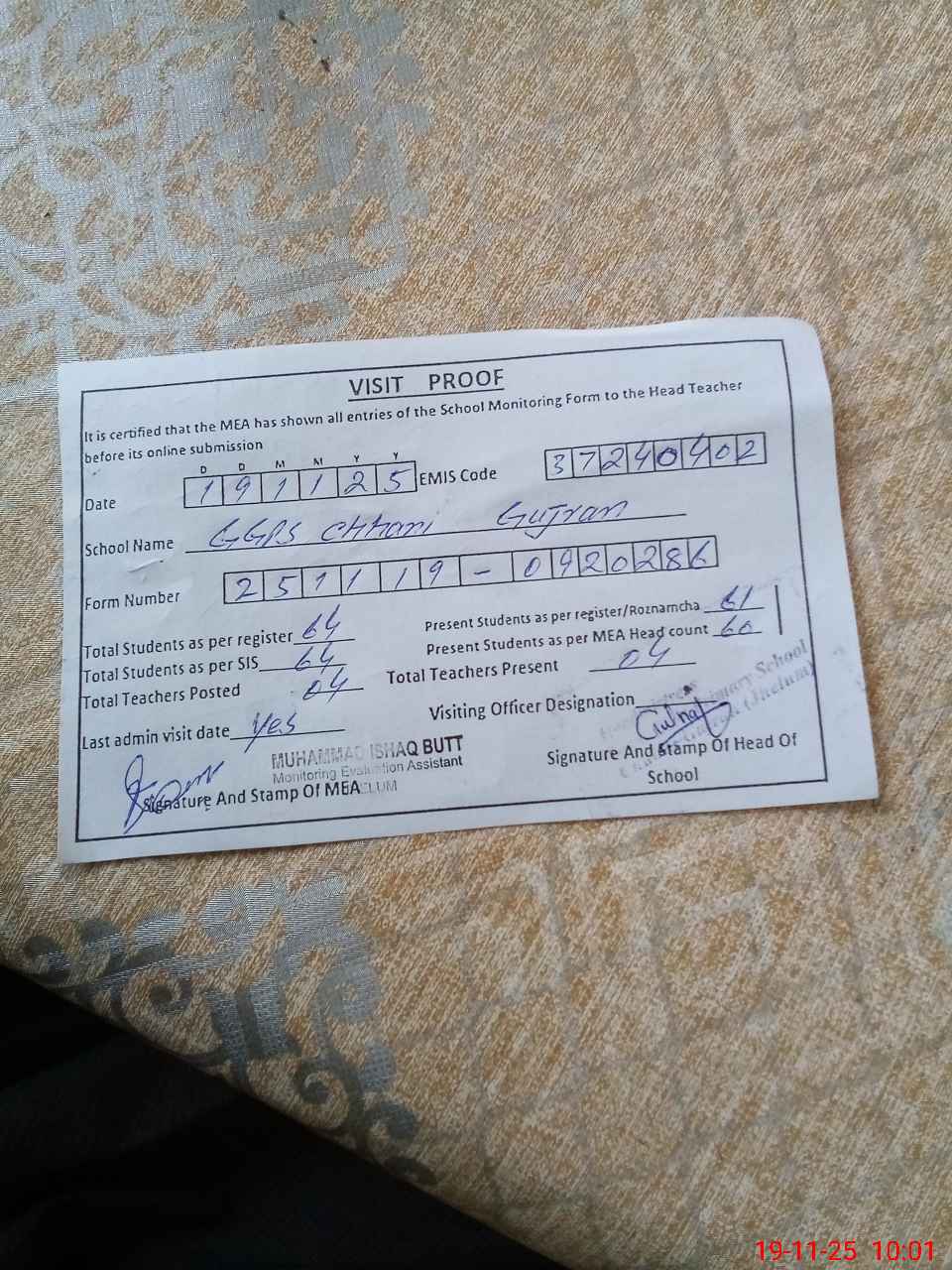 | EMIS Code: 37240402 | Name of School: GGPS CHHANI GUJRAN | |||