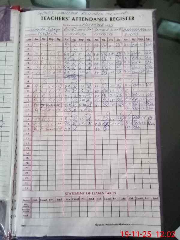 | Remarks (Use Separate Page if Required): Attendance of teaching staff and students on SIS Software is not updated Nitasha Siddique SSE IT absent from 30 Oct 2025 Data as per provided by School Staff and found during physical visit | |||||