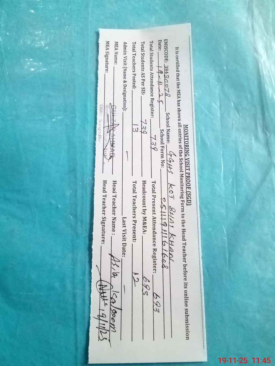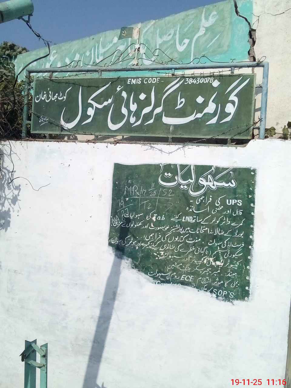 | EMIS Code: 38430078 | Name of School: GGHS KOT BHAI KHAN | |||