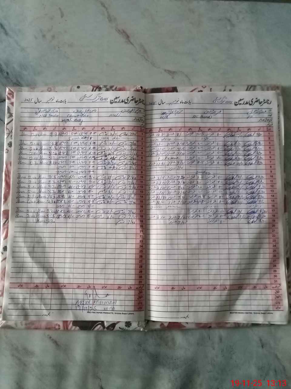 | CNIC | Full Name | Designation | R/C | Absence During Last Calender Month |