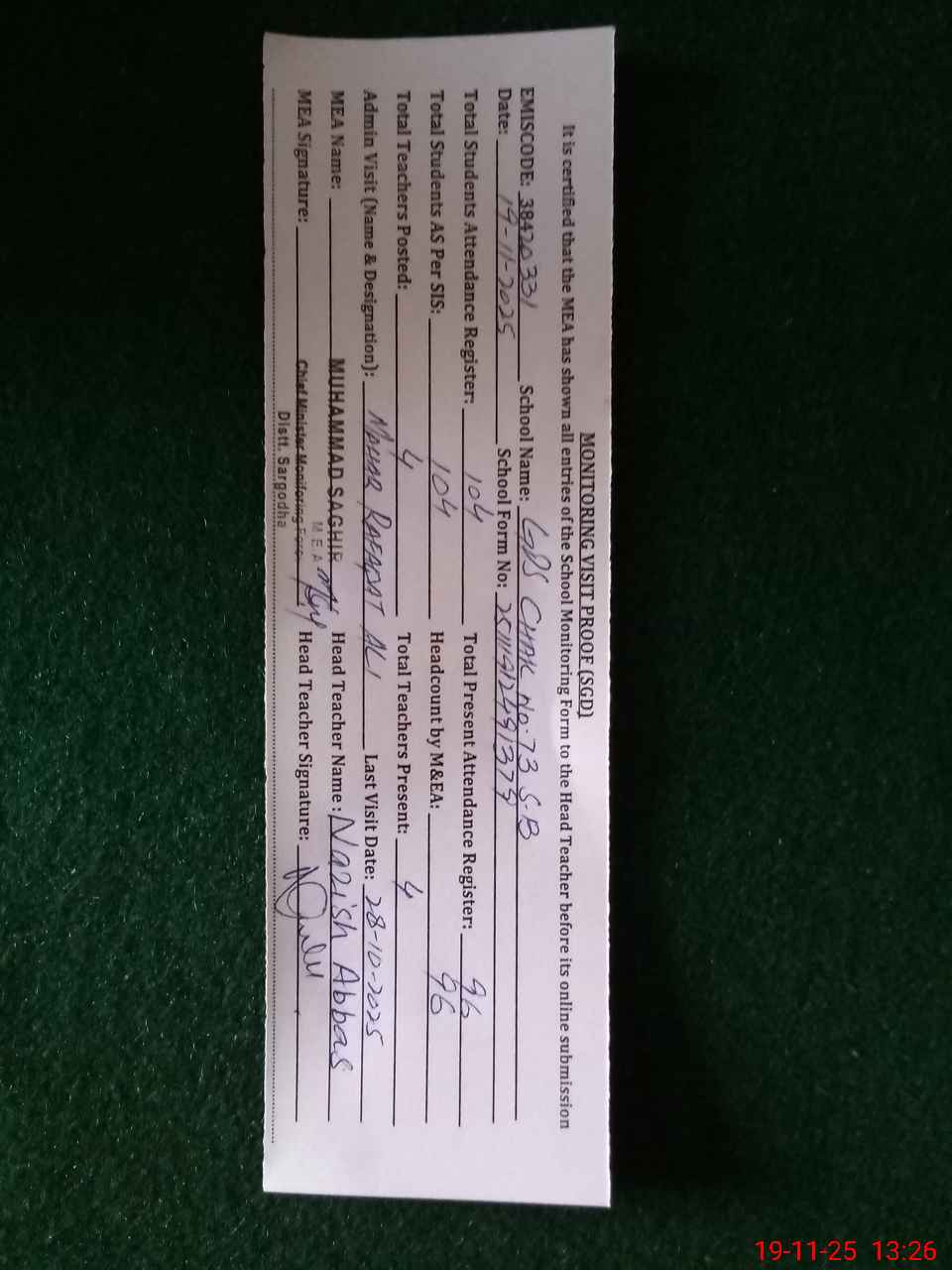 | EMIS Code: 38420331 | Name of School: GPS CHAK NO.73 SB | |||