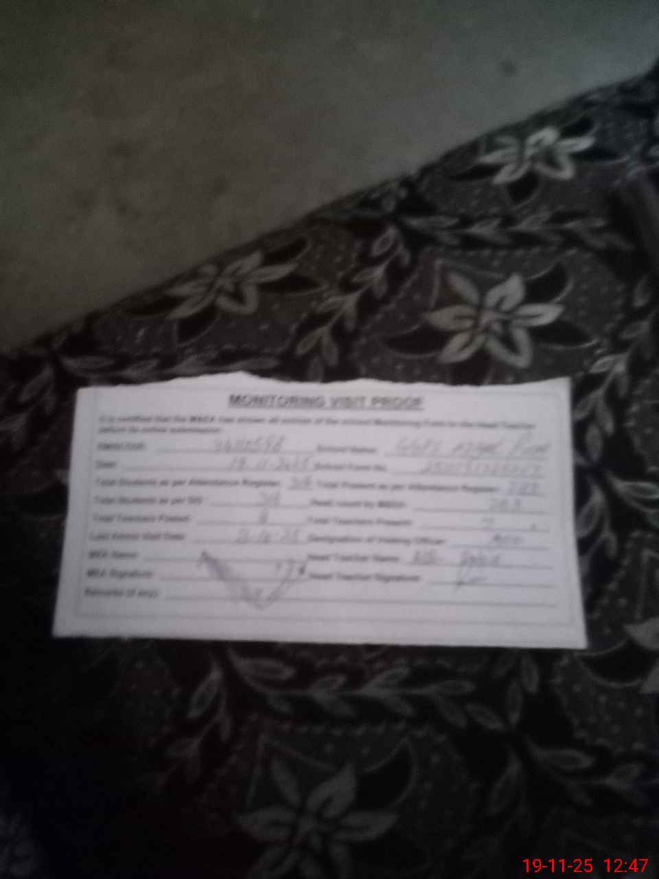 | Certified that this School was Inspected by the Undersigned MEA/DMO Today and the Information Stated Above is as Per Record. | |||||