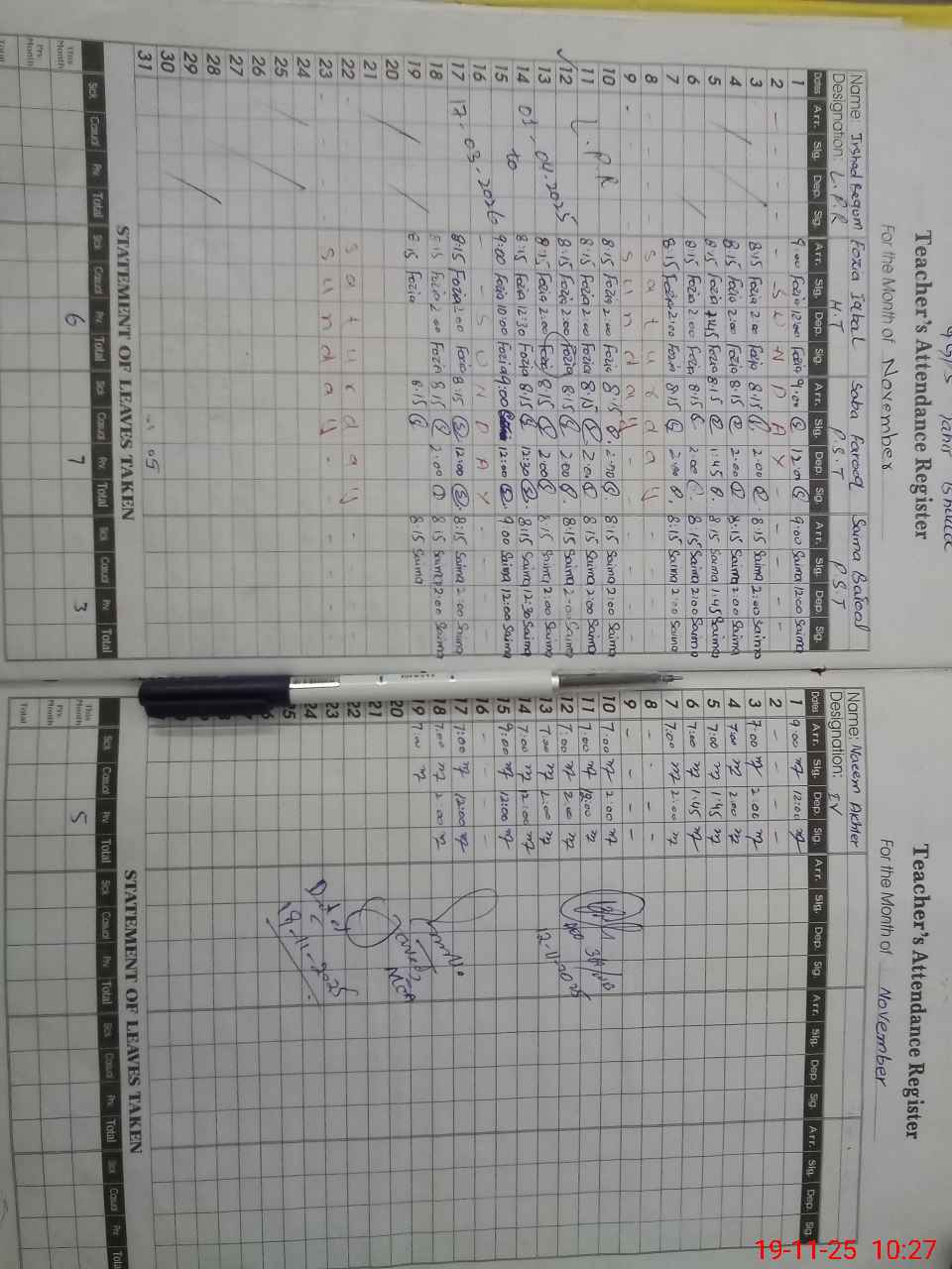 | Leave | Duty | Absent | Maternity | Medical | Ex- Pak |