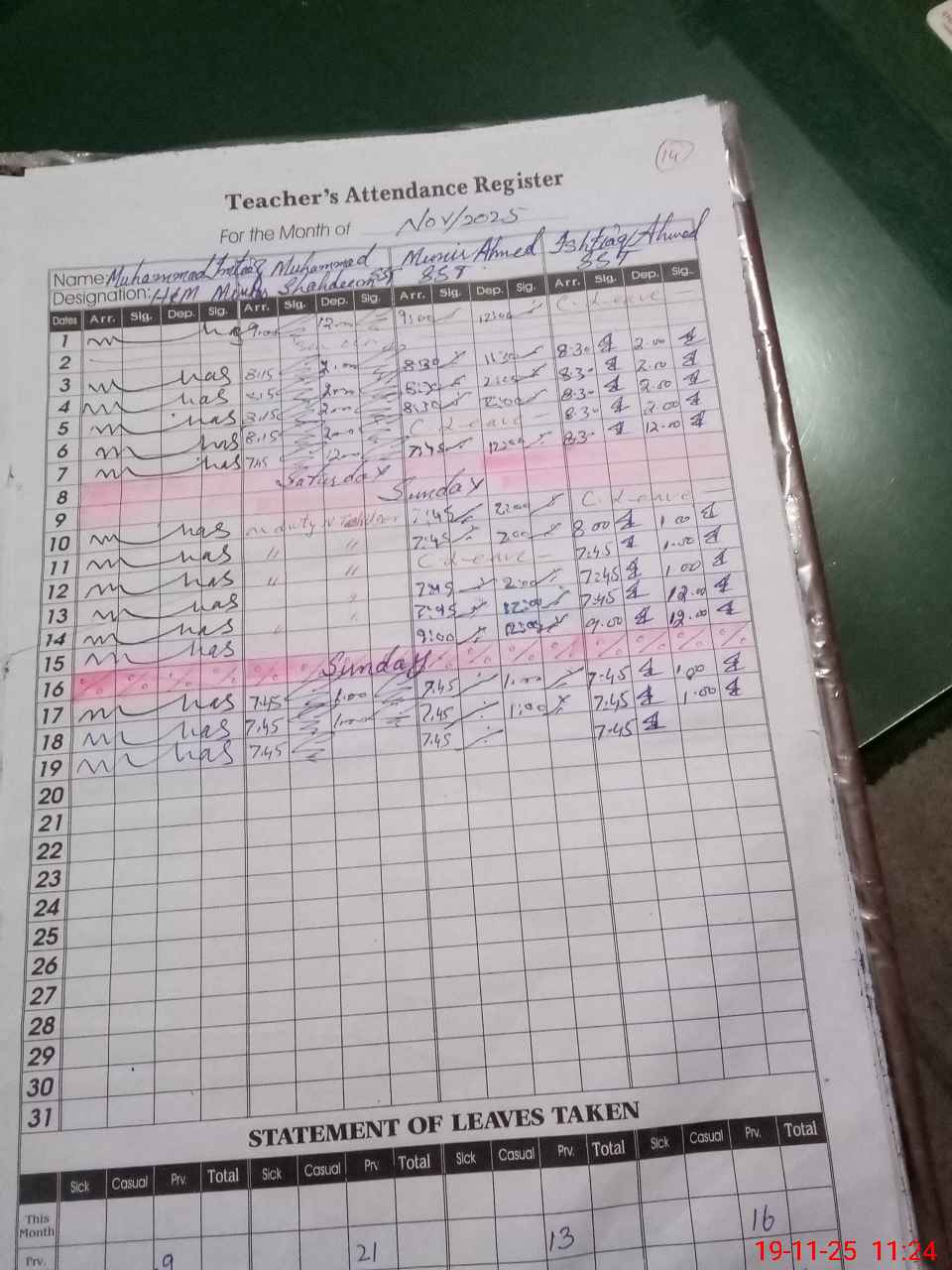 | 37**** | Ta**** Ah**** | SST | Regular | 0 | 0 | 0 | 0 | 0 | 0 | 0 | 0 | 0 | Absent (Un-Authorized) |