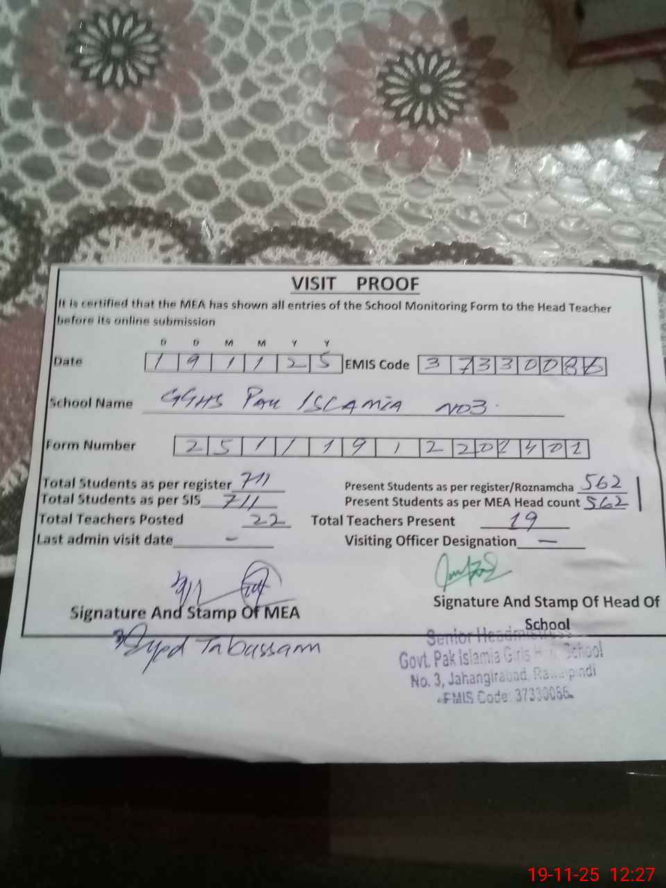| EMIS Code: 37330086 | Name of School: GGHS PAK ISLAMIA NO.3 | |||