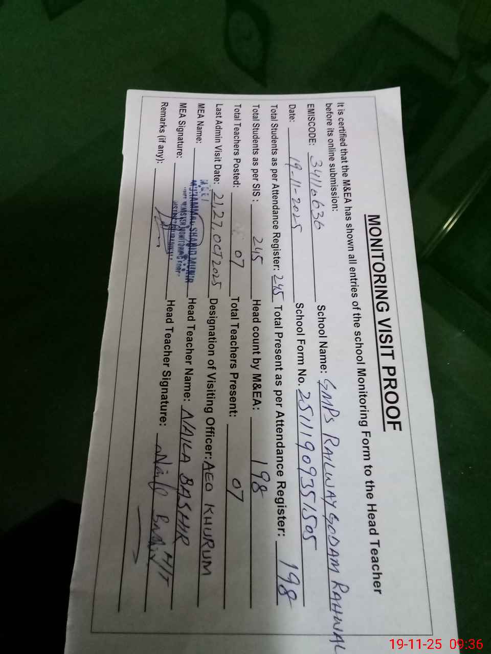 | EMIS Code: 34110636 | Name of School: GMPS RAILWAY GODAM | |||