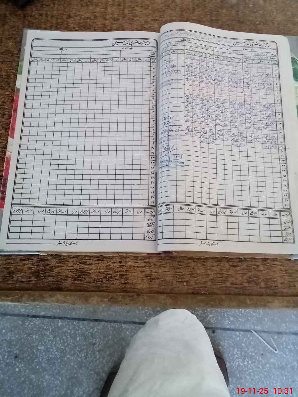 | CNIC | Full Name | Designation | R/C | Absence During Last Calender Month |