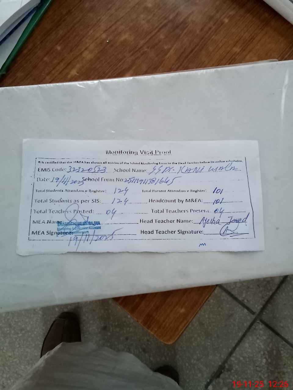 | EMIS Code: 32320523 | Name of School: GGPS KANI WALA | |||