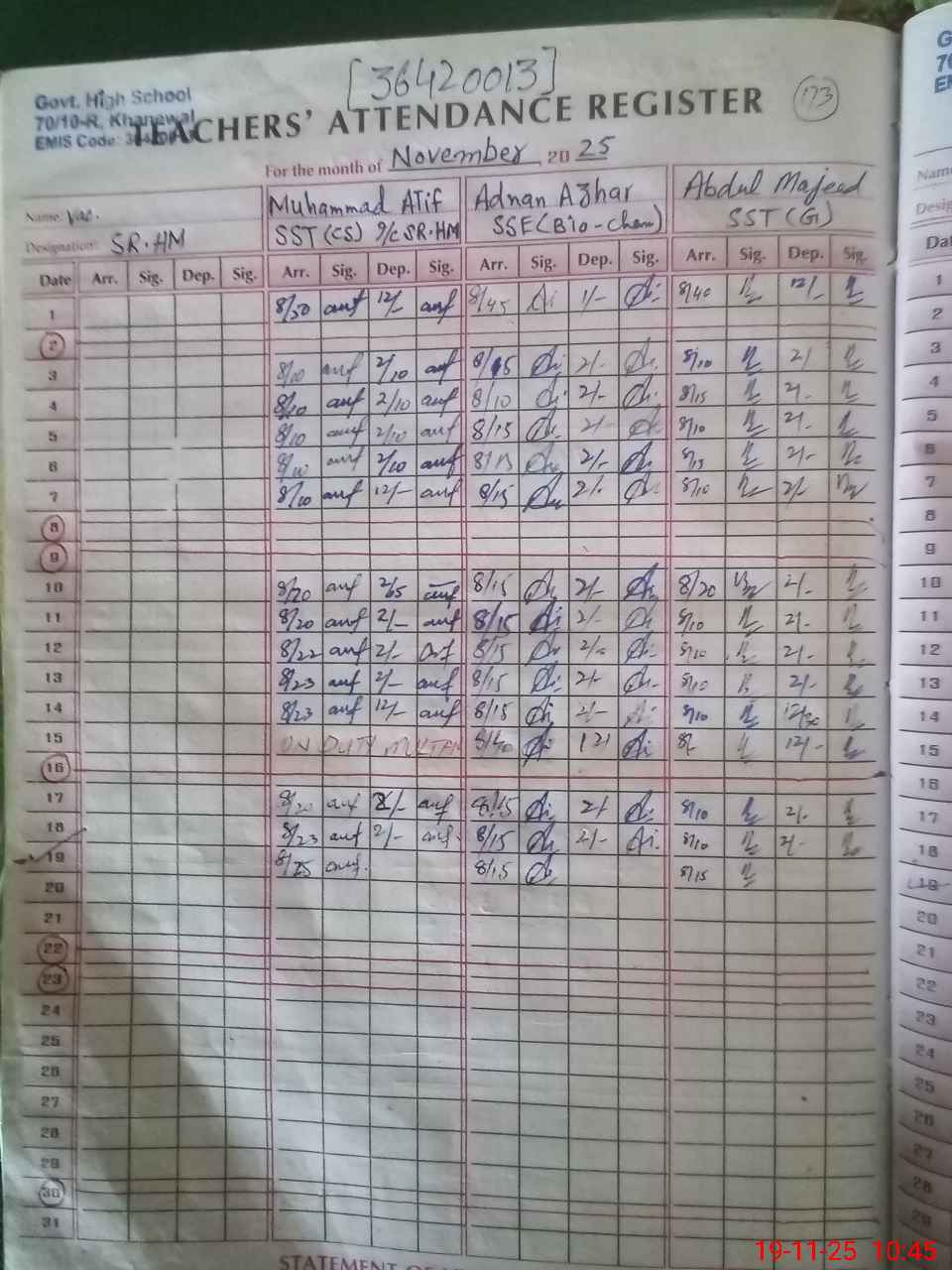 | EMIS Code: 36420013 | Name of School: GHS 70/10-R, KHANEWAL | |||