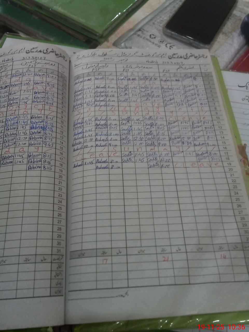 | Leave | Duty | Absent | Maternity | Medical | Ex- Pak |