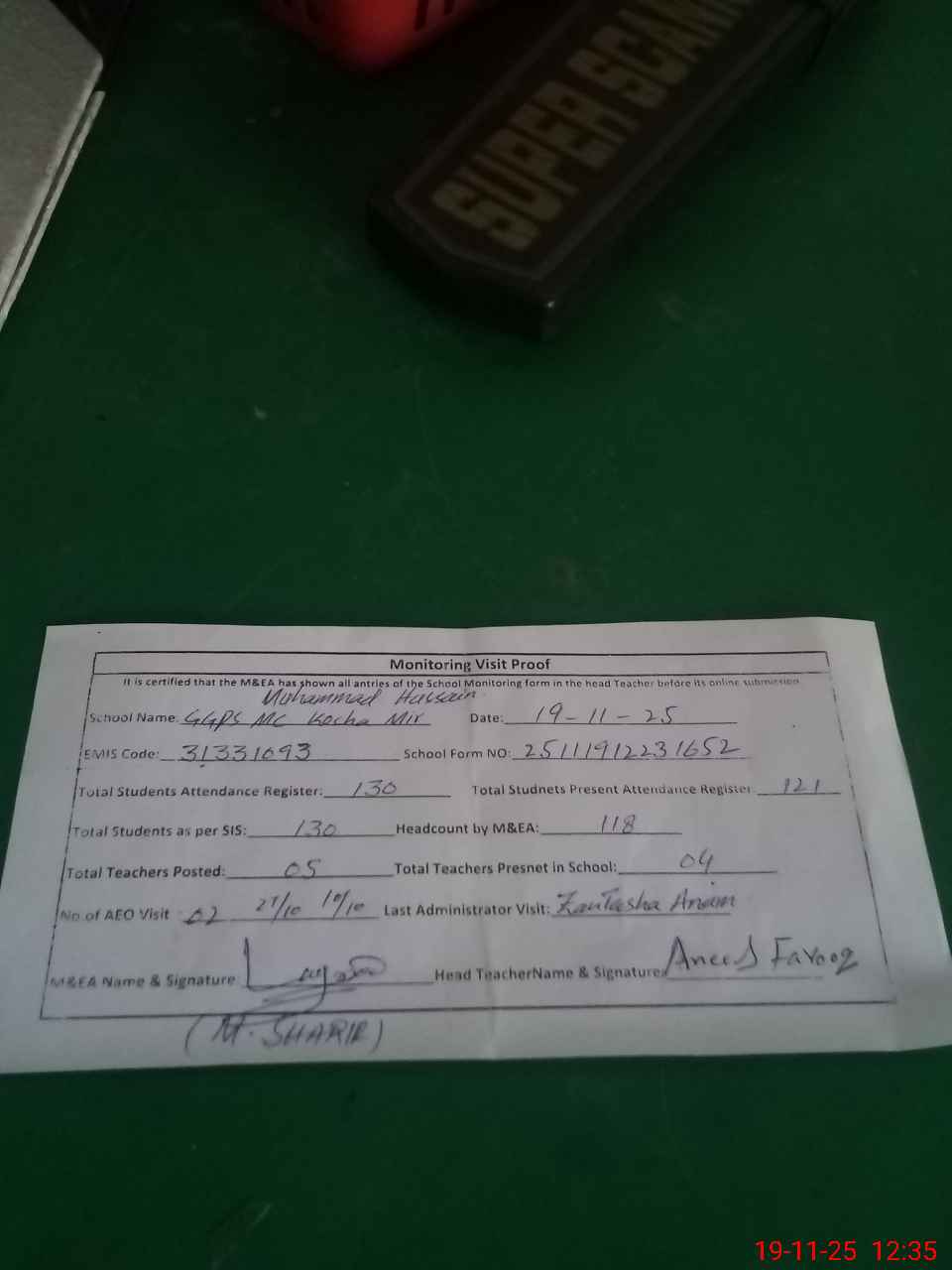 | EMIS Code: 31331093 | Name of School: GGPS MC KOCHA MIR MUHAMMAD HUSSAIN | |||
