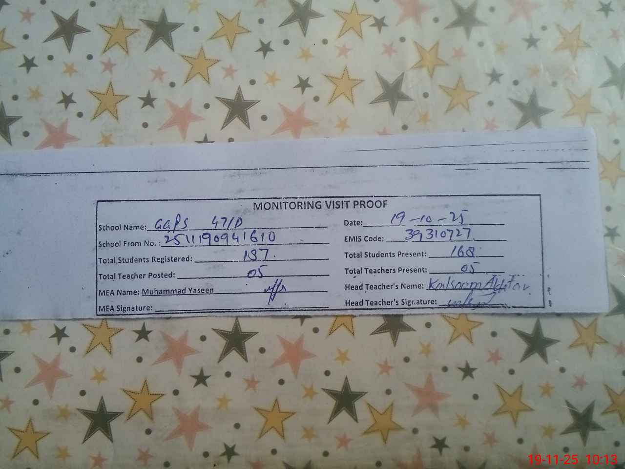 | EMIS Code: 39310727 | Name of School: GGPS CHAK NO.47 D | |||