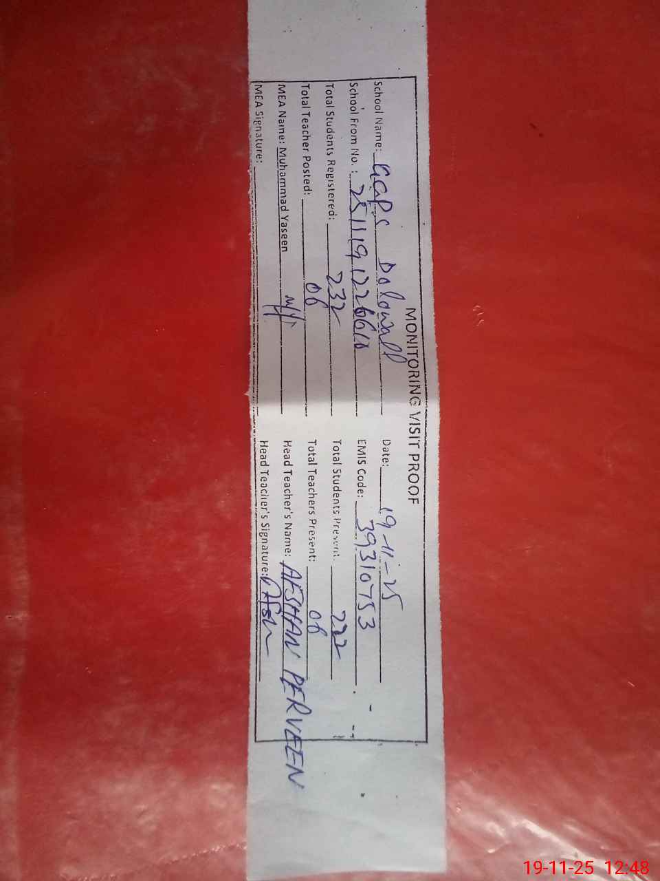 | Certified that this School was Inspected by the Undersigned MEA/DMO Today and the Information Stated Above is as Per Record. | |||||