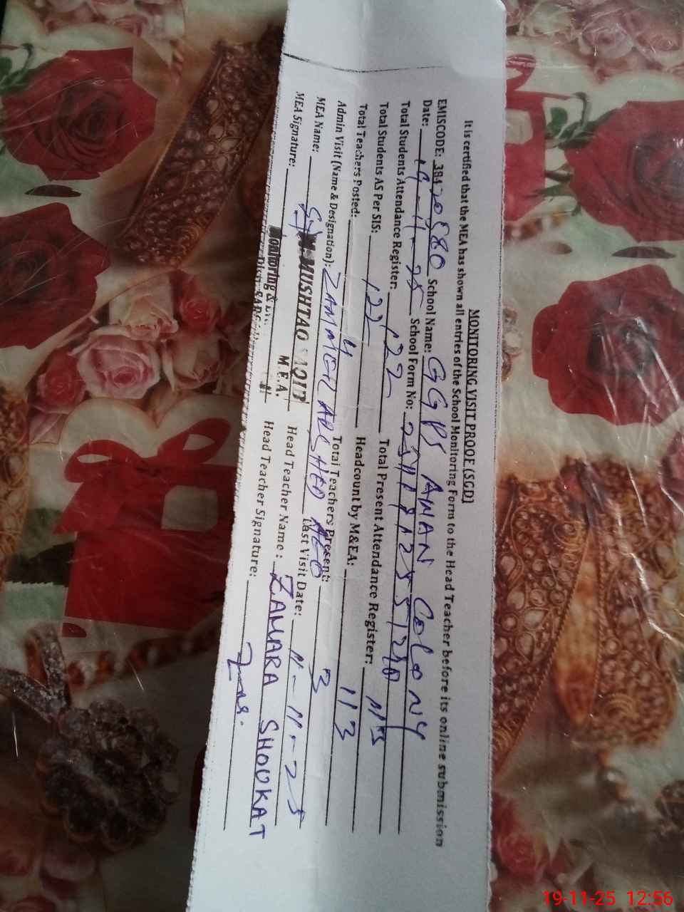 | EMIS Code: 38420580 | Name of School: GGPS AWAN COLONY | |||