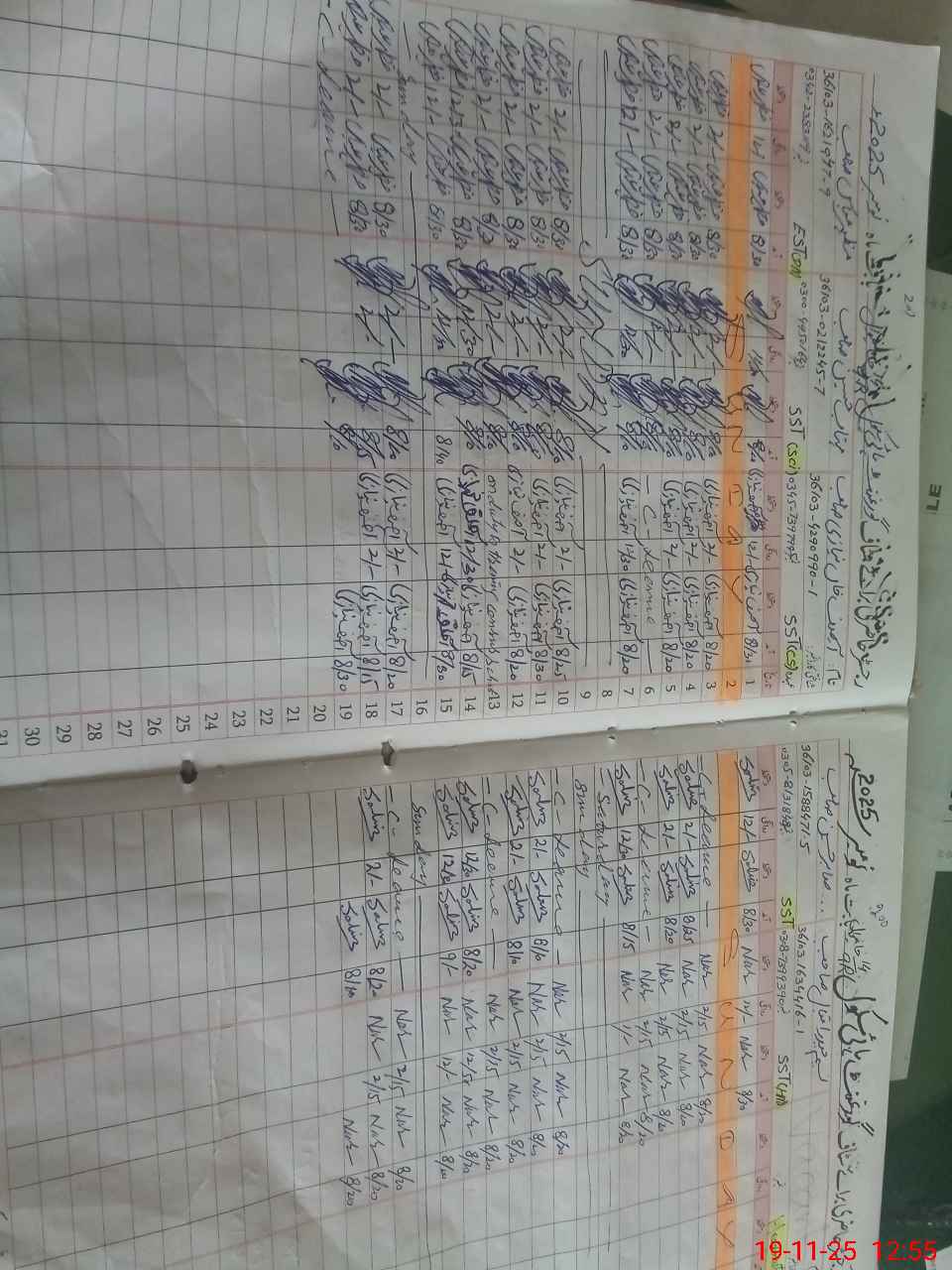 | CNIC | Full Name | Designation | R/C | Absence during last cal. month |