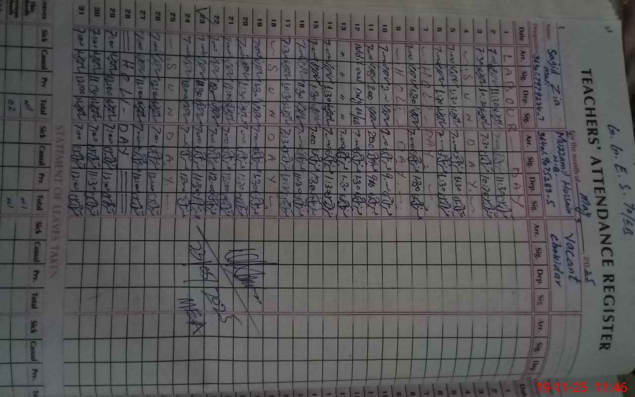 | Name: HU**** GI**** Designation: (School Headmaster's/Headmistress's) EST G Phone/Cell Number: 03**** |