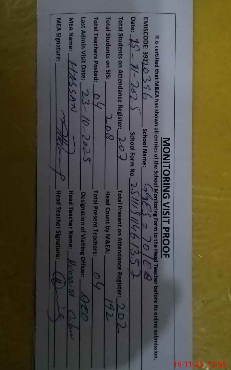 | Attendance Register | Head Teacher | MEA with School | Visit Proof |