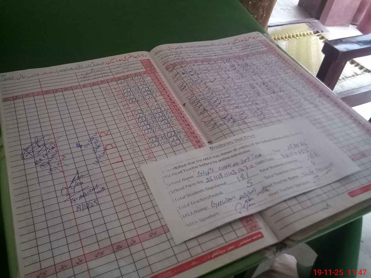 | Remarks (Use Separate Page if Required): Last seen by Name Naheed kousar Designation DDEO Date 13 Nov 2025 | |||||