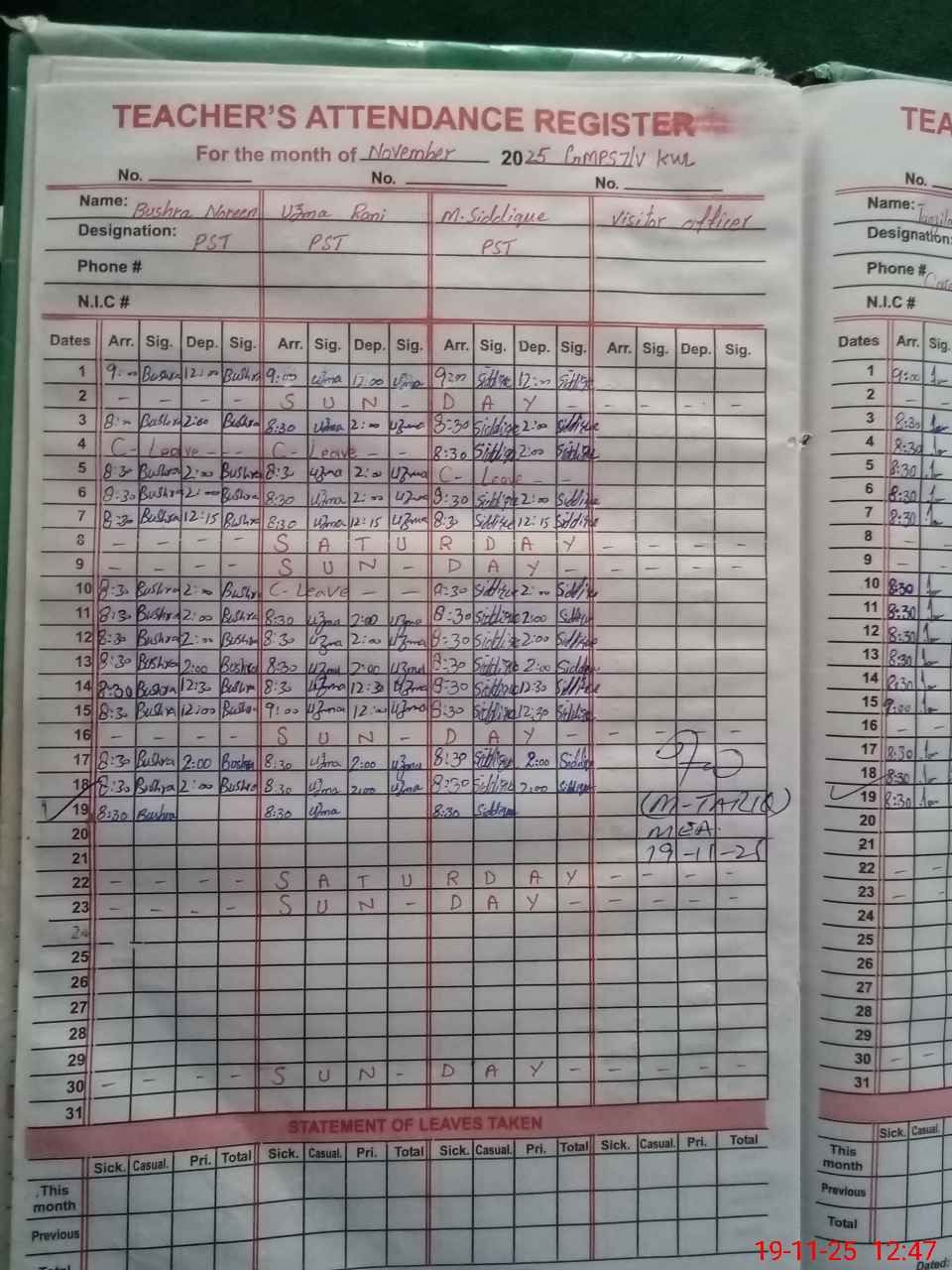| Remarks (Use Separate Page if Required): 02 STIs joined in the school from 02 Oct 2025 | |||||