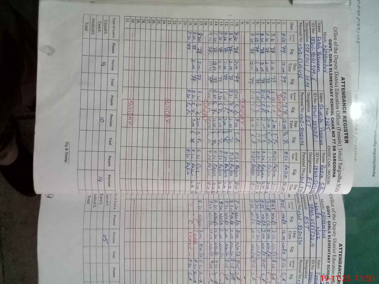 | CNIC | Full Name | Designation | R/C | Absence During Last Calender Month |