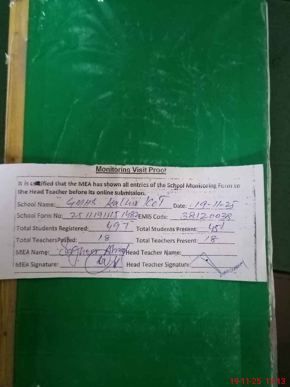 | EMIS Code: 38120038 | Name of School: GMHS KALLUR KOT | |||